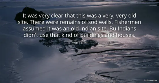 Ingstad, Helge. (2026, January 17). It was very clear that this was a very, very old site. There were remains of sod walls. Fishermen assumed it was an old Indian site. Bu Indians didn't use that kind of buildings and houses. FixQuotes. https://fixquotes.com/quotes/it-was-very-clear-that-this-was-a-very-very-old-32865/