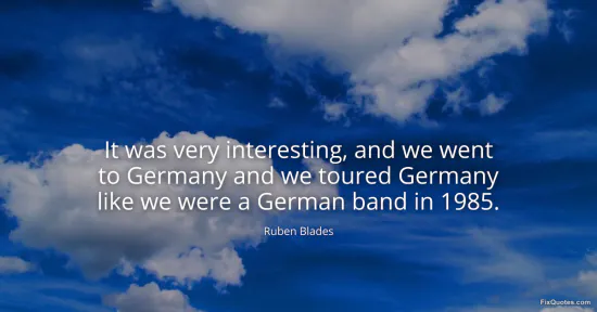 Blades, Ruben. "It was very interesting, and we went to Germany and we toured Germany like we were a German band in 1985." FixQuotes. January 15, 2026. https://fixquotes.com/quotes/it-was-very-interesting-and-we-went-to-germany-118850/.