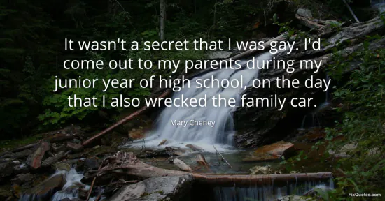 Cheney, Mary. (2026, January 16). It wasn't a secret that I was gay. I'd come out to my parents during my junior year of high school, on the day that I also wrecked the family car. FixQuotes. https://fixquotes.com/quotes/it-wasnt-a-secret-that-i-was-gay-id-come-out-to-93309/