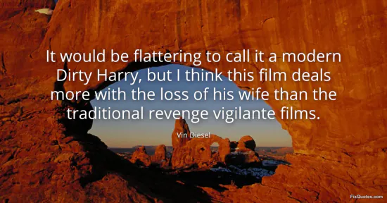 Diesel, Vin. "It would be flattering to call it a modern Dirty Harry, but I think this film deals more with the loss of his wife than the traditional revenge vigilante films." FixQuotes. January 16, 2026. https://fixquotes.com/quotes/it-would-be-flattering-to-call-it-a-modern-dirty-98007/.
