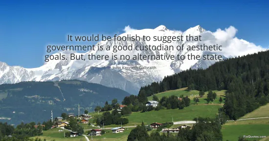 Galbraith, John Kenneth. (2026, January 18). It would be foolish to suggest that government is a good custodian of aesthetic goals. But, there is no alternative to the state. FixQuotes. https://fixquotes.com/quotes/it-would-be-foolish-to-suggest-that-government-is-16073/