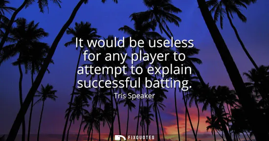 There’s a sly humility hiding inside Tris Speaker’s blunt line: the best hitters can’t fully tell you what they’re doing because the thing that makes it “successful” lives below language. Batting looks like a mechanical problem - stance, grip, timing - but Speaker is pointing at the part that refuses to be diagrammed. A great at-bat happens at the speed of reflex and nerve. By the time you’ve found the words, the pitch is already in the catcher’s mitt.