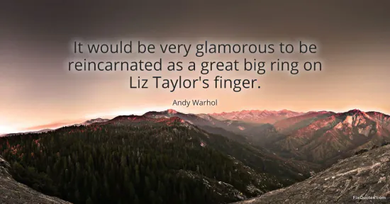 Warhol, Andy. "It would be very glamorous to be reincarnated as a great big ring on Liz Taylor's finger." FixQuotes. January 15, 2026. https://fixquotes.com/quotes/it-would-be-very-glamorous-to-be-reincarnated-as-34604/.