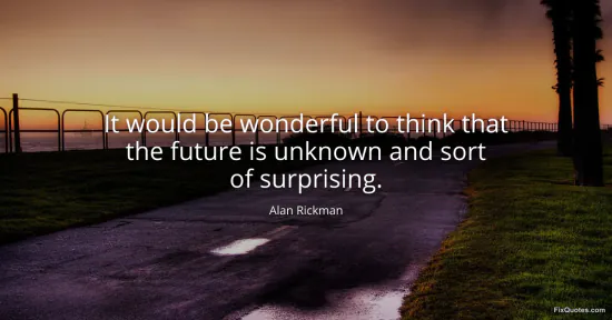 Rickman, Alan. "It would be wonderful to think that the future is unknown and sort of surprising." FixQuotes. January 15, 2026. https://fixquotes.com/quotes/it-would-be-wonderful-to-think-that-the-future-is-149739/.