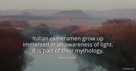 Steele, Barbara. "Italian cameramen grow up immersed in an awareness of light. It is part of their mythology." FixQuotes. January 16, 2026. https://fixquotes.com/quotes/italian-cameramen-grow-up-immersed-in-an-138946/.