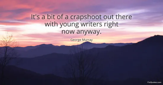 Murray, George. (2026, January 17). It's a bit of a crapshoot out there with young writers right now anyway. FixQuotes. https://fixquotes.com/quotes/its-a-bit-of-a-crapshoot-out-there-with-young-47826/