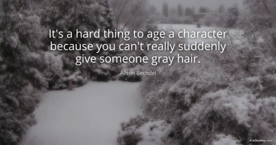 Bechdel, Alison. "It's a hard thing to age a character because you can't really suddenly give someone gray hair." FixQuotes. January 17, 2026. https://fixquotes.com/quotes/its-a-hard-thing-to-age-a-character-because-you-41050/.