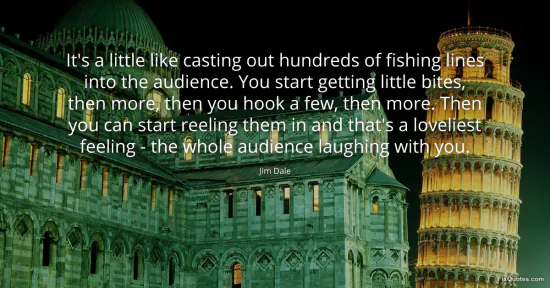 Dale, Jim. (2026, January 17). It's a little like casting out hundreds of fishing lines into the audience. You start getting little bites, then more, then you hook a few, then more. Then you can start reeling them in and that's a loveliest feeling - the whole audience laughing with you. FixQuotes. https://fixquotes.com/quotes/its-a-little-like-casting-out-hundreds-of-fishing-62403/