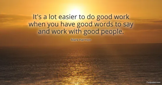 Harmon, Mark. (2026, January 16). It's a lot easier to do good work when you have good words to say and work with good people. FixQuotes. https://fixquotes.com/quotes/its-a-lot-easier-to-do-good-work-when-you-have-127715/