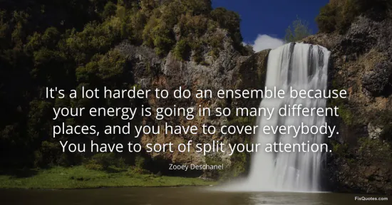 Deschanel is sneaking a craft note into what sounds like a casual complaint: ensembles don’t just add more people, they multiply the points of failure. Her language is tellingly physical and logistical. “Energy” and “cover” are stage-manager verbs, not red-carpet ones. The work she’s naming isn’t simply acting; it’s continuous calibration - reading the room, adjusting timing, sharing focus, and maintaining a scene’s temperature while the camera (or audience) keeps changing its mind about who matters.