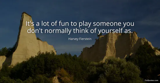Fierstein, Harvey. (2026, January 17). It's a lot of fun to play someone you don't normally think of yourself as. FixQuotes. https://fixquotes.com/quotes/its-a-lot-of-fun-to-play-someone-you-dont-53359/