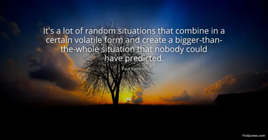 Kantner, Paul. (2026, January 15). It's a lot of random situations that combine in a certain volatile form and create a bigger-than- the-whole situation that nobody could have predicted. FixQuotes. https://fixquotes.com/quotes/its-a-lot-of-random-situations-that-combine-in-a-168251/