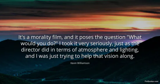 Williamson, Kevin. "It's a morality film, and it poses the question "What would you do?" I took it very seriously, just as the director did in terms of atmosphere and lighting, and I was just trying to help that vision along." FixQuotes. January 16, 2026. https://fixquotes.com/quotes/its-a-morality-film-and-it-poses-the-question-103449/.