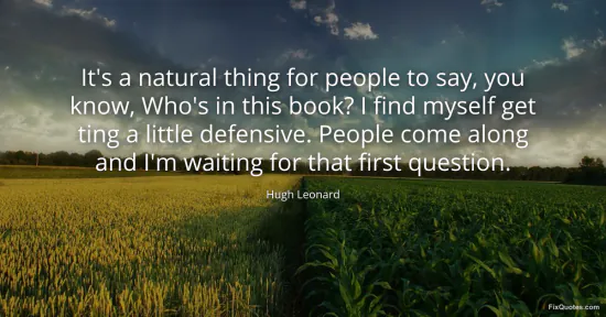 Leonard, Hugh. "It's a natural thing for people to say, you know, Who's in this book? I find myself get ting a little defensive. People come along and I'm waiting for that first question." FixQuotes. January 17, 2026. https://fixquotes.com/quotes/its-a-natural-thing-for-people-to-say-you-know-27002/.