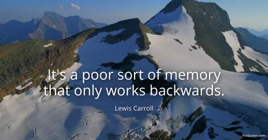 Carroll, Lewis. "It's a poor sort of memory that only works backwards." FixQuotes. January 18, 2026. https://fixquotes.com/quotes/its-a-poor-sort-of-memory-that-only-works-22405/.