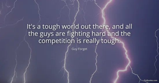 Forget, Guy. "It's a tough world out there, and all the guys are fighting hard and the competition is really tough." FixQuotes. February 16, 2026. https://fixquotes.com/quotes/its-a-tough-world-out-there-and-all-the-guys-are-158364/.