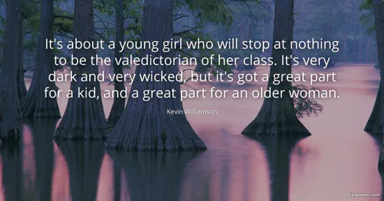 Williamson, Kevin. (2026, January 15). It's about a young girl who will stop at nothing to be the valedictorian of her class. It's very dark and very wicked, but it's got a great part for a kid, and a great part for an older woman. FixQuotes. https://fixquotes.com/quotes/its-about-a-young-girl-who-will-stop-at-nothing-158841/