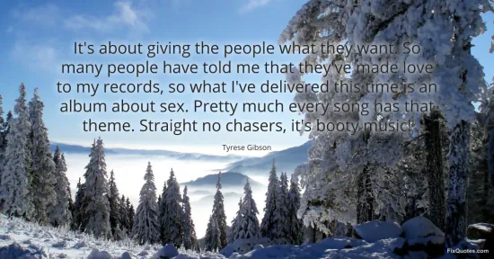 Gibson, Tyrese. "It's about giving the people what they want. So many people have told me that they've made love to my records, so what I've delivered this time is an album about sex. Pretty much every song has that theme. Straight no chasers, it's booty music!" FixQuotes. February 16, 2026. https://fixquotes.com/quotes/its-about-giving-the-people-what-they-want-so-116473/.