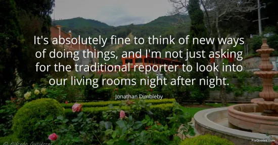 Dimbleby, Jonathan. (2026, January 16). It's absolutely fine to think of new ways of doing things, and I'm not just asking for the traditional reporter to look into our living rooms night after night. FixQuotes. https://fixquotes.com/quotes/its-absolutely-fine-to-think-of-new-ways-of-doing-135174/