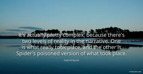 Byrne, Gabriel. (2026, January 16). It's actually pretty complex, because there's two levels of reality in the narrative. One is what really took place, and the other is Spider's poisoned version of what took place. FixQuotes. https://fixquotes.com/quotes/its-actually-pretty-complex-because-theres-two-91641/