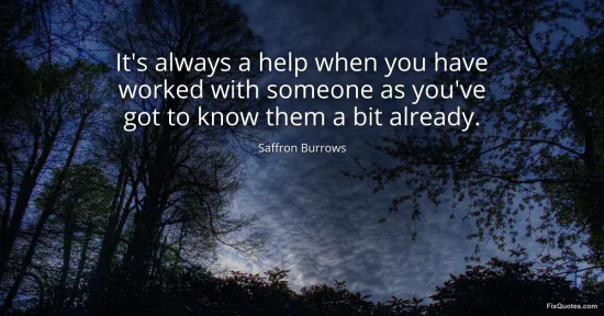 Burrows, Saffron. (2026, January 15). It's always a help when you have worked with someone as you've got to know them a bit already. FixQuotes. https://fixquotes.com/quotes/its-always-a-help-when-you-have-worked-with-166593/