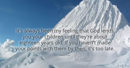 Ford, Betty. "It's always been my feeling that God lends you your children until they're about eighteen years old. If you haven't made your points with them by then, it's too late." FixQuotes. January 18, 2026. https://fixquotes.com/quotes/its-always-been-my-feeling-that-god-lends-you-23342/.