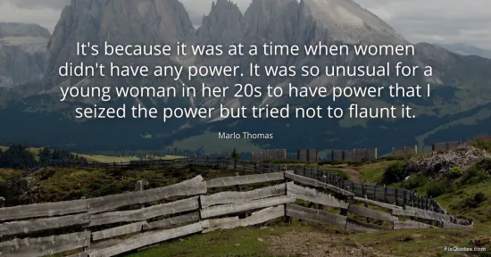 Thomas, Marlo. (2026, January 15). It's because it was at a time when women didn't have any power. It was so unusual for a young woman in her 20s to have power that I seized the power but tried not to flaunt it. FixQuotes. https://fixquotes.com/quotes/its-because-it-was-at-a-time-when-women-didnt-115101/