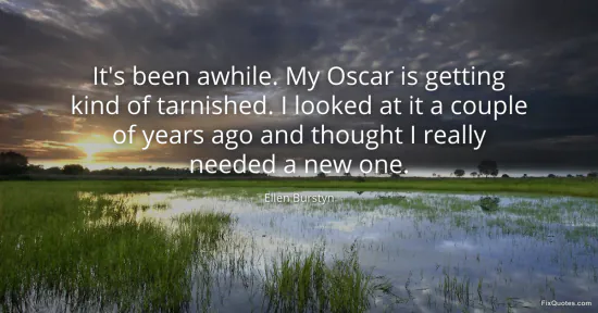 Burstyn, Ellen. (2026, January 15). It's been awhile. My Oscar is getting kind of tarnished. I looked at it a couple of years ago and thought I really needed a new one. FixQuotes. https://fixquotes.com/quotes/its-been-awhile-my-oscar-is-getting-kind-of-141165/