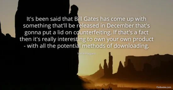 Haggard, Merle. "It's been said that Bill Gates has come up with something that'll be released in December that's gonna put a lid on counterfeiting. If that's a fact then it's really interesting to own your own product - with all the potential methods of downloading." FixQuotes. January 16, 2026. https://fixquotes.com/quotes/its-been-said-that-bill-gates-has-come-up-with-88069/.