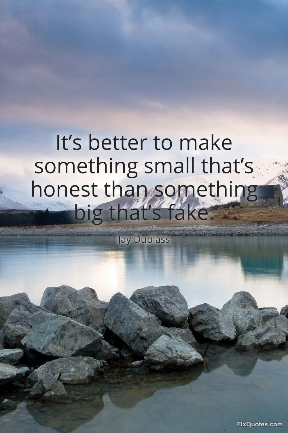 Duplass, Jay. "It’s better to make something small that’s honest than something big that’s fake." FixQuotes. January 30, 2026. https://fixquotes.com/quotes/its-better-to-make-something-small-thats-honest-184696/.