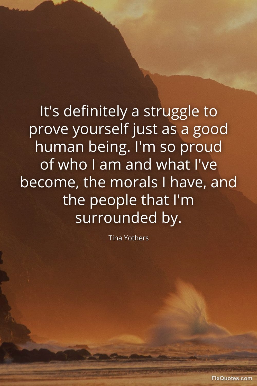Yothers, Tina. "It's definitely a struggle to prove yourself just as a good human being. I'm so proud of who I am and what I've become, the morals I have, and the people that I'm surrounded by." FixQuotes. January 16, 2026. https://fixquotes.com/quotes/its-definitely-a-struggle-to-prove-yourself-just-96751/.