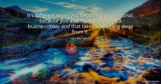 Leonard, Sugar Ray. (2026, January 16). It's different when you become a professional, because you also have to become a businessman, and that takes something away from it. FixQuotes. https://fixquotes.com/quotes/its-different-when-you-become-a-professional-104105/