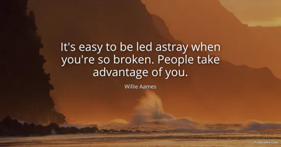 Aames, Willie. (2026, January 18). It's easy to be led astray when you're so broken. People take advantage of you. FixQuotes. https://fixquotes.com/quotes/its-easy-to-be-led-astray-when-youre-so-broken-2463/