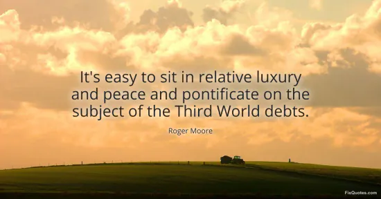 Moore, Roger. (2026, January 16). It's easy to sit in relative luxury and peace and pontificate on the subject of the Third World debts. FixQuotes. https://fixquotes.com/quotes/its-easy-to-sit-in-relative-luxury-and-peace-and-118830/