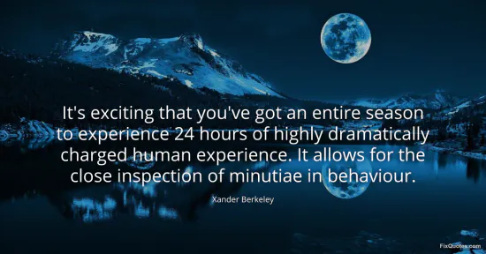 Berkeley, Xander. (2026, January 16). It's exciting that you've got an entire season to experience 24 hours of highly dramatically charged human experience. It allows for the close inspection of minutiae in behaviour. FixQuotes. https://fixquotes.com/quotes/its-exciting-that-youve-got-an-entire-season-to-96728/