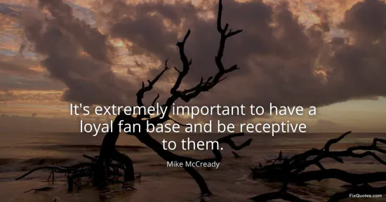McCready, Mike. "It's extremely important to have a loyal fan base and be receptive to them." FixQuotes. January 16, 2026. https://fixquotes.com/quotes/its-extremely-important-to-have-a-loyal-fan-base-120387/.