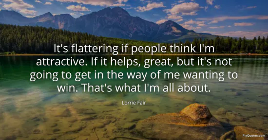 Fair, Lorrie. "It's flattering if people think I'm attractive. If it helps, great, but it's not going to get in the way of me wanting to win. That's what I'm all about." FixQuotes. January 17, 2026. https://fixquotes.com/quotes/its-flattering-if-people-think-im-attractive-if-77122/.