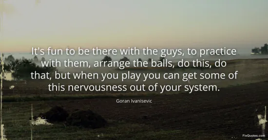 Ivanisevic, Goran. (2026, January 17). It's fun to be there with the guys, to practice with them, arrange the balls, do this, do that, but when you play you can get some of this nervousness out of your system. FixQuotes. https://fixquotes.com/quotes/its-fun-to-be-there-with-the-guys-to-practice-55370/