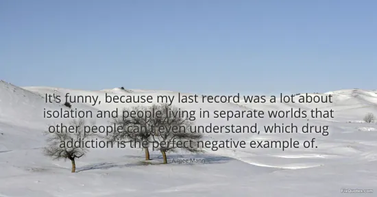 Mann, Aimee. (2026, January 17). It's funny, because my last record was a lot about isolation and people living in separate worlds that other people can't even understand, which drug addiction is the perfect negative example of. FixQuotes. https://fixquotes.com/quotes/its-funny-because-my-last-record-was-a-lot-about-74256/