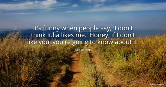 Roberts, Julia. (2026, January 16). It's funny when people say, 'I don't think Julia likes me.' Honey, if I don't like you, you're going to know about it. FixQuotes. https://fixquotes.com/quotes/its-funny-when-people-say-i-dont-think-julia-96329/