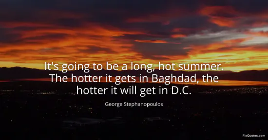 Stephanopoulos, George. "It's going to be a long, hot summer. The hotter it gets in Baghdad, the hotter it will get in D.C." FixQuotes. January 17, 2026. https://fixquotes.com/quotes/its-going-to-be-a-long-hot-summer-the-hotter-it-67019/.
