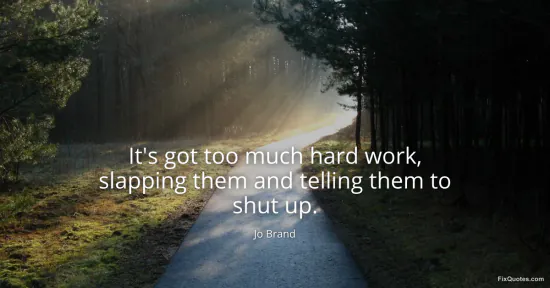 Brand, Jo. (2026, February 16). It's got too much hard work, slapping them and telling them to shut up. FixQuotes. https://fixquotes.com/quotes/its-got-too-much-hard-work-slapping-them-and-165193/