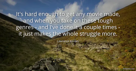 Kasdan, Lawrence. (2026, January 15). It's hard enough to get any movie made, and when you take on these tough genres - and I've done it a couple times - it just makes the whole struggle more. FixQuotes. https://fixquotes.com/quotes/its-hard-enough-to-get-any-movie-made-and-when-164141/