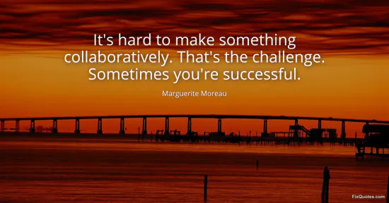 Moreau, Marguerite. (2026, January 16). It's hard to make something collaboratively. That's the challenge. Sometimes you're successful. FixQuotes. https://fixquotes.com/quotes/its-hard-to-make-something-collaboratively-thats-89216/