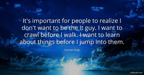 Daly, Carson. "It's important for people to realize I don't want to be the It guy. I want to crawl before I walk. I want to learn about things before I jump into them." FixQuotes. January 17, 2026. https://fixquotes.com/quotes/its-important-for-people-to-realize-i-dont-want-45210/.