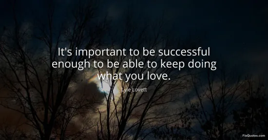 Lovett’s line smuggles a hard-earned realism into what could’ve been a Hallmark slogan. He’s not romanticizing art as pure passion; he’s talking about the grind economics that decide whether passion gets to survive. “Successful enough” is the key modifier: not famous, not rich, not worshipped. Just solvent. The goal isn’t winning culture; it’s buying time.