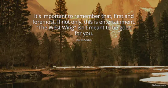 Sorkin, Aaron. (2026, January 15). It's important to remember that, first and foremost, if not only, this is entertainment. "The West Wing" isn't meant to be good for you. FixQuotes. https://fixquotes.com/quotes/its-important-to-remember-that-first-and-foremost-63355/