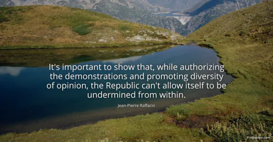 Raffarin, Jean-Pierre. (2026, January 16). It's important to show that, while authorizing the demonstrations and promoting diversity of opinion, the Republic can't allow itself to be undermined from within. FixQuotes. https://fixquotes.com/quotes/its-important-to-show-that-while-authorizing-the-113233/