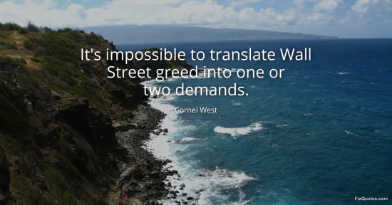 West, Cornel. "It's impossible to translate Wall Street greed into one or two demands." FixQuotes. January 17, 2026. https://fixquotes.com/quotes/its-impossible-to-translate-wall-street-greed-51450/.