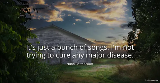 Bettencourt, Nuno. (2026, January 15). It's just a bunch of songs. I'm not trying to cure any major disease. FixQuotes. https://fixquotes.com/quotes/its-just-a-bunch-of-songs-im-not-trying-to-cure-168205/